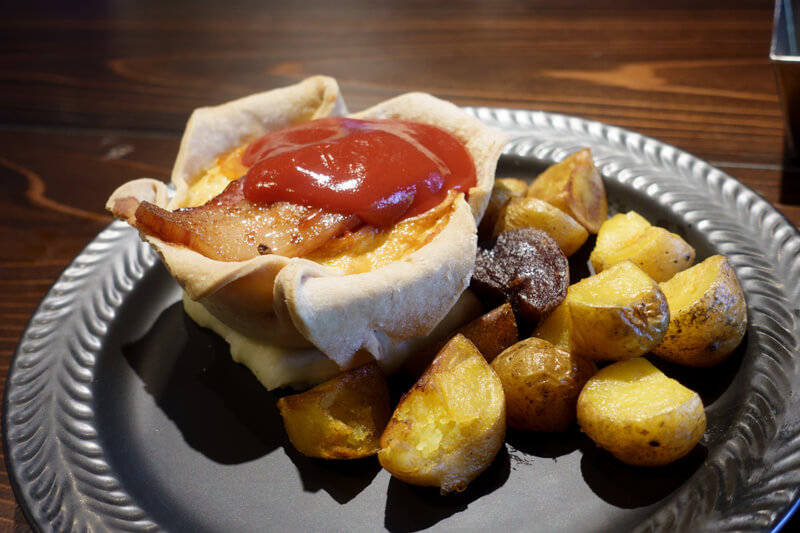外の生地が味がないので、ケチャップを先に食べると、味がないパサパサした感じがしたかなと。